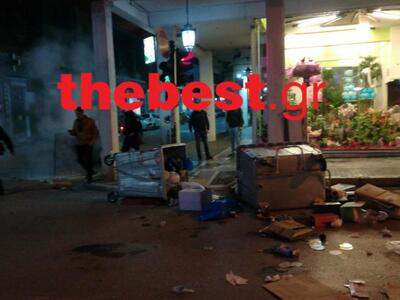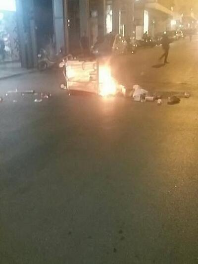20:30 Έβαλαν φωτιά σε κάδους (Αγ. Νικολάου και Κορίνθου) και λάστιχα με τα οποία έφτιαξαν οδοφράγματα, τα άτομα έριξαν μολότοφ και προκλήθηκε ένταση. Οι αστυνομικοί απάντησαν με χημικά.
