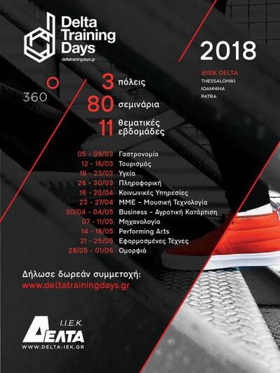 Ο Εκπαιδευτικός Όμιλος ΔΕΛΤΑ, έχοντας θέσει ως πρώτιστο στόχο να προσφέρει μια συνολική 360° εμπειρία κατάρτισης, διοργανώνει και το 2018 τον επιτυχημένο θεσμό των Delta Training Days!