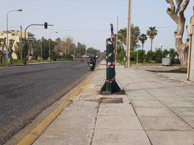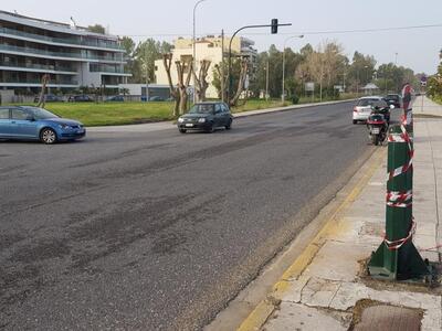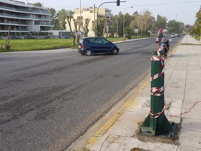 Το φανάρι κόπηκε στα δύο και στο σημείο τοποθετήθηκε ερυθρόλευκη κορδέλα, ώστε να μην κοπεί κανείς από το αιχμηρό τμήμα του φαναριού που παραμένει πακτωμένο στο πεζοδρόμιο.