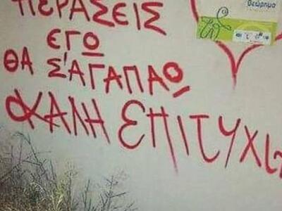 Όμως η παρακάτω φωτογραφία με το μήνυμα στο τοίχο κάποιου σχολείου θυμίζει μία αλήθεια... η αγάπη δεν έχει να κάνει με τις εξετάσεις και την επιτυχία σε αυτές.