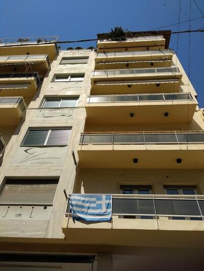 Κρεμασμένη σε κτίριο στη συμβολή της Ερμού με τη Μαιζώνος