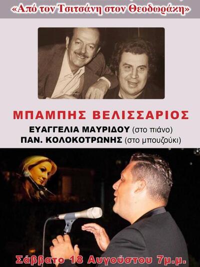 Στις 18/8 θα γίνει συναυλία με τίτλο «Από τον Τσιτσάνη στον Θεοδωράκη».