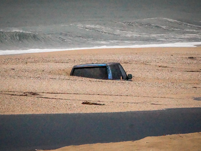 Λόγω της μεγάλης θαλασσοταραχής που επικράτησε εχθές, τόνοι άμμου συσωρρεύτηκαν και στην κυριολεξία σκέπασαν το όχημα. Για το περιστατικό είναι ήδη ενήμερες οι αρχές, ωστόσο δεν έχει αποσαφηνιστεί τι πρόκειται να γίνει από εδώ και πέρα.