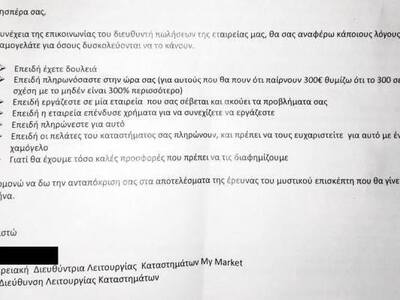 Η εταιρία επιβεβαίωσε το έγγραφο, παίρνοντας όμως αποστάσεις. Σε ανακοίνωσή της η My Market κάνει λόγο για ατυχές και μεμονωμένο περιστατικό, που δεν συνάδει με την φιλοσοφία της.