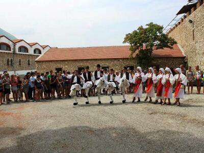 Στη συνέχεια, νέα παιδιά από την Σχολή Χορού του Παναγιώτη Κατσίκη χόρεψαν παραδοσιακούς χορούς που έχουν σχέση με τον Τρύγο, κάτω από τη σκιά ενός αιωνόβιου, πανύψηλου Πεύκου.