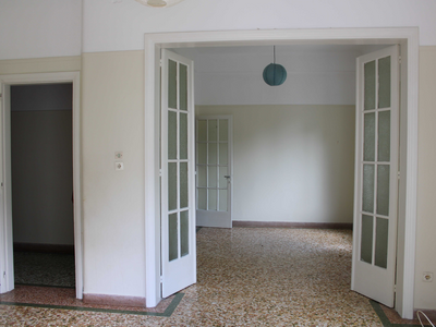 Αποτελείται από τέσσερις κύριους χώρους (2 υπνοδωμάτια, τραπεζαρία και καθιστικό που χωρίζει με τετράφυλλη πόρτα), ξεχωριστή κουζίνα, λουτρό, χολ και ανεξάρτητη μικρή αποθήκη.