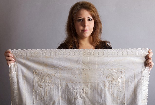 Το μονό σεντόνι –άλλωστε ο Χίτλερ και η Εύα Μπράουν κοιμόντουσαν σε χωριστά κρεβάτια- έχει διαστάσει 168x125 cm και η μαξιλαροθήκη 74x77cm.
