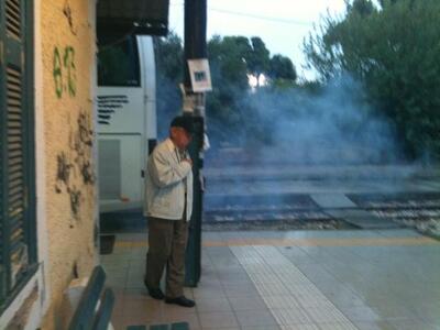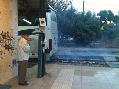 Αποπνικτική είναι η ατμόσφαιρα στον σταθμό του Ρίου, όταν τα λεωφορεία του ΟΣΕ που μεταφέρουν τους επιβάτες προς και από το Πανεπιστήμιο, έχουν ανάμενες τις μηχανές τους. Πολλά από αυτά ρυπαίνουν με καυσαέρια, προκαλώντας ασφυξία σε μια περιοχή που είναι ανοιχτή και επικρατούν σχεδόν πάντα βοριάδες. Όπως και την στιγμή που βγήκαν οι φωτογραφίες.
