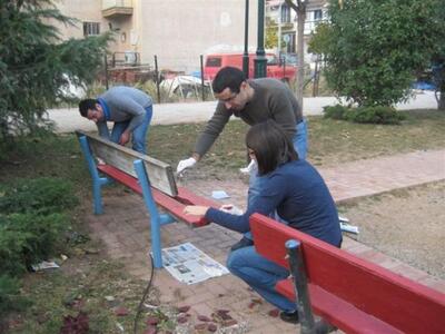Επιδιορθώθηκαν τα σπασμένα παγκάκια και δόθηκε χρώμα στα εντελώς αφυδατωμένα ξύλα.