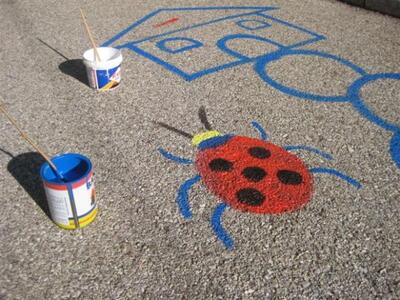 Έτσι, η αυλή του σχολείου δείχνει πιο όμορφη ενώ ταυτόχρονα δίνεται το ερέθισμα στα παιδιά να παίξουν αυτά τα παιχνίδια και να ικανοποιήσουν την ανάγκη τους για καλλιτεχνική έκφραση και δημιουργία.
