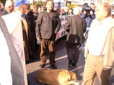 Όπως πάντα, ο Λουκάνικος τάχθηκε στο πλευρό των διαδηλωτών, γαυγίζοντας με άγριες διαθέσεις προς τα ΜΑΤ.