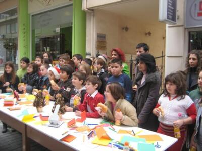 Χριστουγεννιάτικη ατμόσφαιρα και χαρά γέμισαν τον πεζόδρομο Πετμεζά στο κέντρο της πόλης του Αιγίου οι μαθητές και οι μαθήτριες του 9ου Δημοτικού Σχολείου Αιγίου που έστησαν το καλλιτεχνικό τους εργαστήρι και το εργαστήρι ζαχαροπλαστικής. Κατασκεύασαν και χάρισαν πολύχρωμα ζωγραφιστά σημειωματάρια, έπλασαν τρουφομπαλίτσες και κέρασαν τους περαστικούς.