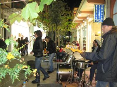 Το βράδυ της ίδιας ημέρας, στους ρυθμούς των Fahrenheit γιόρτασε απόψε ο πεζόδρομος Ευθυμίου Γάτου στο ιστορικό & εμπορικό κέντρο του Αιγίου. Η Αιγιώτικη μπάντα με τους: Νίκο Χριστοδουλόπουλο στα τύμπανα, Έφη Καθαράκη στα φωνητικά, Στέφανο Γρηγοριάδη σε κιθάρα - μπάσο και Κώστα Καρβέλα σε κιθάρα - μπάσο έπαιξαν δικά τους garage-rock κομμάτια και δημιούργησαν μια σύγχρονη μουσική ατμόσφαιρα στο παγωμένο χειμωνιάτικο σκηνικό.