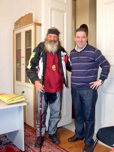 Στο Δημαρχείο της Πάτρας βρέθηκε σήμερα ο Βέλγος Crirstian Van Limbergen, ο οποίος κάνει το γύρο του κόσμου με τα πόδια. Ο Van Limbergen ξεκίνησε το 1989 την προσπάθεια από το Βέλγιο και στόχος του είναι να σπάσει το ρεκόρ Γκίνες. Μέχρι σήμερα έχει διασχίσει 13 κράτη.