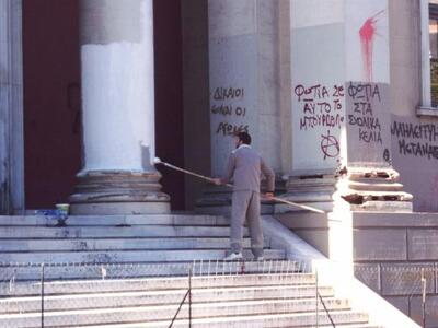 Εν μέσω όλων αυτών των προβλημάτων, κάποιοι «αρμόδιοι» σκέφτηκαν ότι το μόνο πρόβλημα του Δικαστικού Μεγάρου, είναι τα συνθήματα των αναρχικών στους τοίχους του!