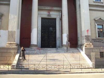 Έτσι, έδωσαν εντολή να καλυφθούν, με άσπρη μπογιά παρακαλώ, από την πρόσοψη του κτιρίου.