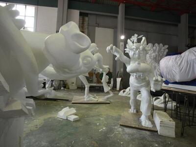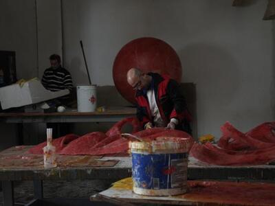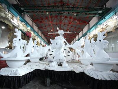 Τα άρματα αυτή την περίοδο βρίσκονται λίγο πριν τον χρωματισμό τους και οι δημιουργοί τους εργάζονται εντατικά.