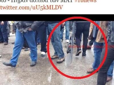 Μια ασπίδα των ΜΑΤ στα χέρια διαδηλωτή δείχνει φωτογραφία που κυκλοφόρησε στο twitter πριν λίγο. Όπως αναφέρεται, πρόκειται για ασπίδα που πήραν από άνδρα των ΜΑΤ στη διάρκεια της έντασης που επικράτησε μεταξύ της αστυνομίας και των διαδηλωτών.