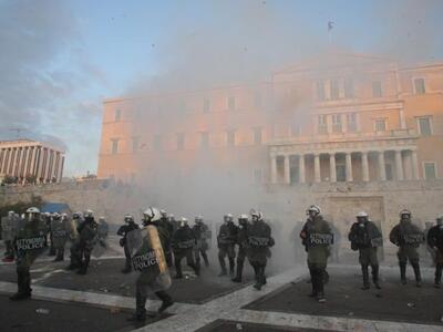 18.40 Βίαια επεισόδια σημειώνονται αυτή την ώρα στο κέντρο της Αθήνας όπου τουλάχιστον 100.000 πολίτες έχουν συγκεντρωθεί για να διαδηλώσουν κατά των νέων, σκληρών μέτρων. Πετροπόλεμος, μολότοφ, ξύλο και χημικά συνθέτουν το πολεμικό σκηνικό στο κέντρο της πόλης.