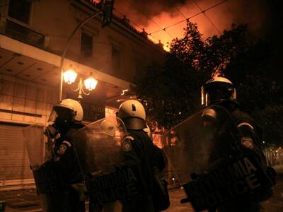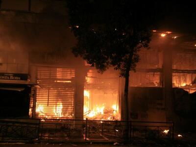 Λίγο μετά τις 00:00 τυλίχθηκαν στις φλόγες τράπεζες στη Συγγρού καθώς και καταστήματα στην Ακαδημίας και στην Ερμού.Eπίσης κάηκε το κτίριο του Ταχυδρομικού Ταμιευτηρίου στο Μοναστηράκι και το υποκατάστημα της τράπεζας Κύπρου στην Αθηνάς, ενώ μεγάλη φωτιά ξέσπασε επίσης σε τράπεζα στη Διονυσίου Αεροπαγείτου.