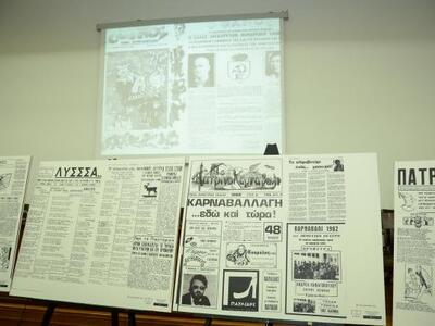 Δείτε φωτογραφίες από τα εγκαίνια της έκθεσης "Ο Σατιρικός Τύπος στο Πατρινό Καρναβάλι"! Τα εκθέματα είναι από το αρχείο της Ε.Σ.Η.Ε.Π.Η.Ν υπό την αιγίδα του Επορικού Επιμελητηρίου Αχαίας.