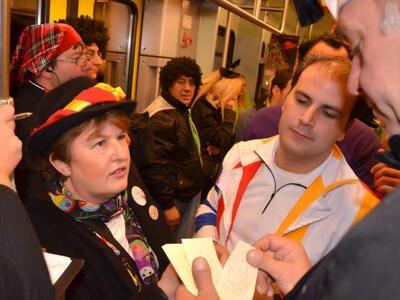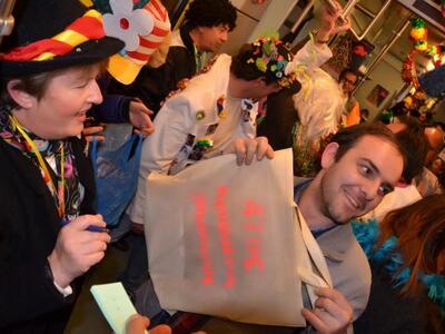 Εξάλλου η παράδοση της σακούλας έγινε με έναν πρωτότυπο τρόπο, όπου οι κυνηγοί έδωσαν τη σακούλα με τις απαντήσεις και τα φέρτε ταξιδεύοντας στο καρναβαλικά διακοσμημένο βαγόνι που την Κυριακή στις 6.30μμ από τον Κεντρικό σιδηροδρομικό σταθμό της Πάτρας αναχώρησε με προορισμό τον Άι Βασίλη και επέστρεψε στην Πάτρα. Παραδόθηκαν 55 σακούλες(συνεργασίες) από 69 πληρώματα.