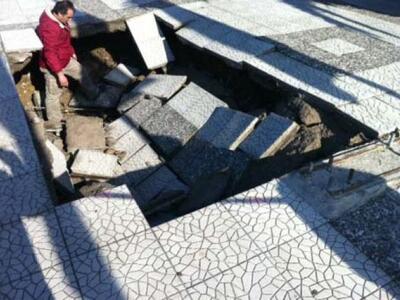Μεγάλη καθίζηση σε πεζοδρόμιο