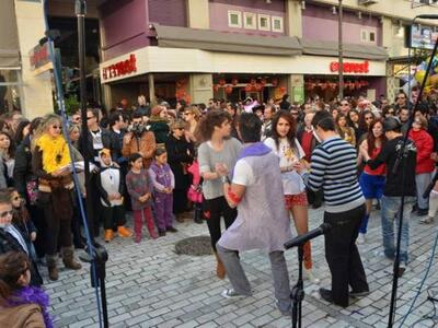 Το ενδιαφέρον πλήθους κόσμου προκάλεσε από τις 12 έως τις 2 το μεσημέρι στη συμβολή των πεζόδρομων Αγίου Νικολάου και Ρήγα Φεραίου η συμμετοχή των Μουσικών Εκπαιδευτηρίων Θεοδώρου με μουσικές και τραγούδια από τα παιδιά, ενώ στην πλατεία Συμμάχων, στο πλαίσιο του β.λ.ε.πο. - vlepo.org - βήμα λόγου επικοινωνίας πολιτισμού, από το πρωί κατέθεταν μια εναλλακτική μουσική ματιά ο Απόστολος Γουγουλάκης με πρωτότυπες συνθέσεις του και διασκευές τραγουδιών σε funky, bluesy και rock ύφος, οι Flamarabenco με αραβικά και φλαμένκο ηχοχρώματα και οι Bleach με κομμάτια από τη δισκογραφία τους και εκδοχές γνωστών τραγουδιών της funk, της disco και της rock.