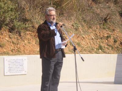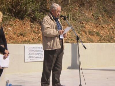 Ακολούθησε ο Ντίνος Μπέσκος, πρόεδρος της ΠΟΑΕΑ Αχαΐας, ανέγνωσε συγκινητικό ποίημα αφιερωμένο στους πολλούς αγωνιστές από την Κουνινά που εκτελέστηκαν σε αυτό το χώρο.