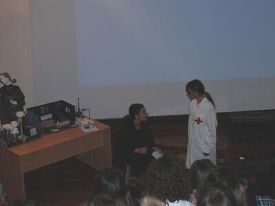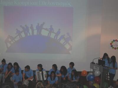 Η Ομάδα μαθητών του 7ου Γυμνασίου με υπεύθυνες καθηγήτριες την Αικατερίνη Καραντώνη, Μαθηματικό - Δ/ντρια και Ελισάβετ Δεμαρτίνου, καθηγήτρια Γαλλικής Φιλολογίας παρουσίασε θεατρικό δρώμενο ανάμεσα στην Μαρία Κιουρί και την κόρη της στον πόλεμο με τίτλο «Ο Ερυθρός Σταυρός εμπνέει, η Μαρία Κιουρί δραστηριοποιείται». Η Ομάδα μαθητών του Γυμνασίου Αρσακείου με υπεύθυνους καθηγητές το Σάββα Σταματόπουλο, Τεχνολόγο και Φωτεινή Σαραντοπούλου Φιλόλογο παρουσίασαν την έρευνά τους με θέμα «Μαρία Κιουρί και Ραδιενέργεια» και 3 μακέτες σχετικές με τη ραδιενέργεια που κατασκεύασαν στο μάθημα της τεχνολογίας.
