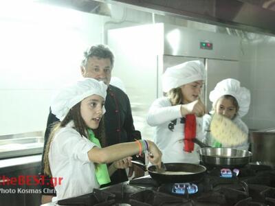 Το ραντεβού με τους μικρούς σεφ δόθηκε το πρωί στον χώρο "Εις το Έπακρον", στο Μιντιλόγλι. Με πρωτοβουλία του Συλλόγου Γονέων και Κηδεμόνων του 1ου Δημοτικού Σχολείου Παραλίας ο κ. Λαζάρου βρέθηκε στην Πάτρα, ενώ η μαγειρική έγινε πραγματικό παιχνίδι, με την οργάνωση και το συντονισμό του Πληρώματος 94.Τα παιδιά έβαλαν ποδιές και σκούφους και μπήκαν στην κουζίνα μαζί με τον σεφ και έδωσαν τον καλύτερο εαυτό τους.