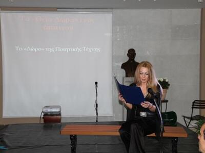 Ποιήματα του Ζαχαρία Παπαντωνίου απήγγειλε η ηθοποιός κα Ειρήνη Ευαγγελάτου, ενώ στο σκηνικό δρώμενο που έλαβε χώρα συμμετείχαν εκπαιδευτικοί και μαθητές του σχολείου. Την εκδήλωση παρακολούθησε πλήθος κόσμου.