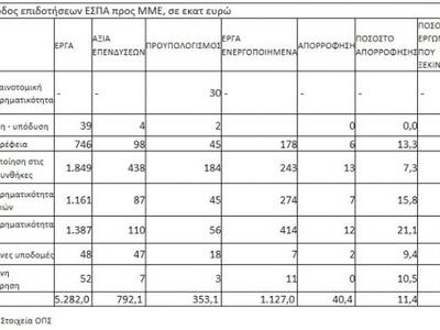 Συγκεντρωτικά στοιχεία για την πορεία κάθε προγράμματος του ΕΣΠΑ προς μικρομεσαίους δεν δημοσιεύονται. Το μόνο που ανακοινώνεται κάποιες φορές και όχι τακτικά, είναι η συνολική απορρόφηση του ΕΣΠΑ, η οποία δημιουργεί «στρεβλή» εικόνα.