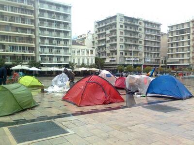 Οι March to Athens έστησαν τις σκηνές τους στην πλατεία Γεωργίου και σήμερα κάποιοι τις μετέφεραν στον Έσπερο, λόγω της δυνατής βροχής.