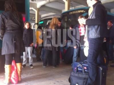 Έξω από το ΚΤΕΛ αποβίβασε στις δέκα ένα λεωφορείο τους επιβάτες, ενώ δέκα λεπτά μετά οι απεργοί εμπόδισαν την έξοδο ενός λεωφορείου που ήταν γεμάτο με επιβάτες.