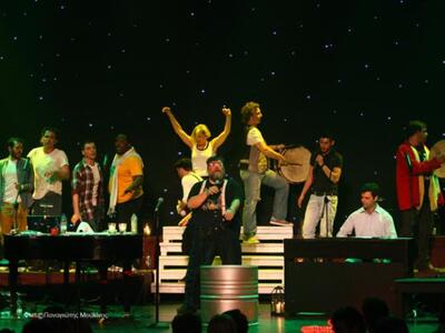 Μαζί τους έπαιξαν και τραγούδησαν οι: Χρήστος Γεροντίδης, Μπάμπης Γούσιας, Jerome Kaluta, Θανάσης Καραθανάσης, Χρήστος Μουστάκας, Δημήτρης Μπογδάνος, Κώστας Μπουγιώτης, Γιώργος Στιβανάκης. Στα δύο πιάνα ο Σταμάτης Κραουνάκης και ο Αρης Βλάχος. (Φωτογραφίες: Παναγιώτης Μουλίνος)