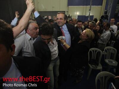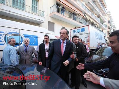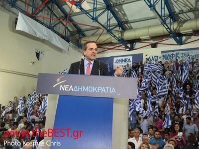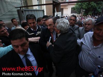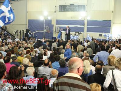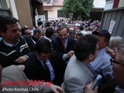 19.55 Μόλις έφτασε στην ΕΑΠ ο Αντώνης Σαμαράς και ανέβηκε στο βήμα καταχειροκροτούμενους απο τους συγκεντρωμένους στο γήπεδο. Κατά την είσοδό του όμως έγινε δέκτης έντονων αποδοκιμασιών απο τους συγκεντρωμένους πολίτες.