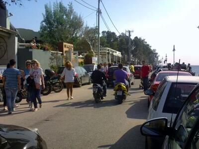 Ωστόσο η μεγάλη κίνηση σε συνδυασμό με τα προβλήματα του παραλιακού δρόμου επανέφεραν στο προσκήνιο τα γνωστά προβλήματα.