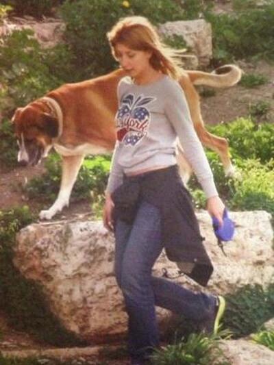 ... ή όταν βγάζει βόλτα τον αγαπημένο της σκύλο, όπως την έχει απαθανατίσει ο φακός του περιοδικού ΟΚ!