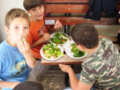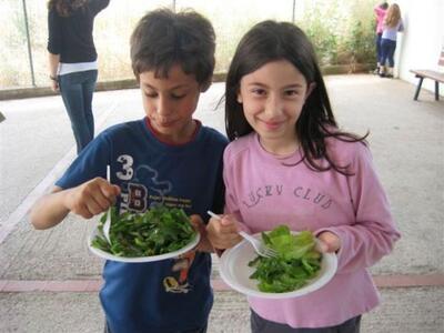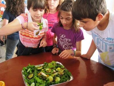 Πρώτα με πρωτοβουλία του διευθυντή κ.Τριαντάφυλλου Κιντή και του Συλλόγου Γονέων & Κηδεμόνων ενημερώθηκαν από τη διατροφολόγο κ.Μαργαρίτα Ματέ για την υγιεινή διατροφή και την διατροφική πυραμίδα κι έπειτα πέρασαν στην πράξη με τη βοήθεια του ΑΓΑΦΡΟΝ και της Έφης Αποστολοπούλου (Εστιατόριο Μελτέμι, Διγελιώτικα): έπλυναν, έκοψαν, ανακάτεψαν, δημιούργησαν φανταστικές σαλάτες με μαρούλι, ρόκα, σπανάκι, ρόδι, πορτοκάλι, ξηρούς καρπούς, κρουτόν και άλλα υλικά και γεύτηκαν με βουλιμία τις πολύχρωμες υγιεινές απολαυστικές τους δημιουργίες.