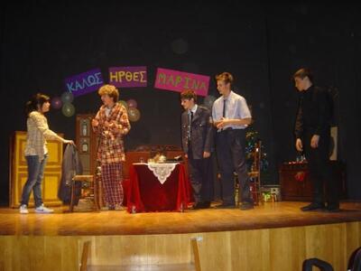 Τους ρόλους έπαιξαν οι μαθητές Αμαριωτάκης Μάνος Γ1, Καμπά Ελένη Β1, Καραχάλιος Γιάννης Β1, Λάμπρου Φωτεινή Β2, Ξένου Ολυμπία Γ2, Στασινοπούλου Άγια Γ2, Τσεκούρας Γιάννης Γ2 και Χαλούλος Αλέξης Γ2.