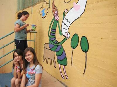 Ζωγράφισαν στο μικρό υπαίθριο θεατράκι του σχολείου τους (Φωτό)