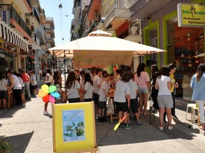 Ο πεζόδρομος της Παντανάσσης έξω από το βιβλιοπωλείο ΒΙΒΛΙΟΠΟΛΙΤΕΙΑ πλημμύρισε από παιδιά τόσο το πρωί όσο και το απόγευμα. Μεταξύ άλλων την δράση παρακολούθησαν παιδιά από το κέντρο Προσχολικής Αγωγής – Νηπιαγωγείο «Το ΠΑΡΑΜΥΘΙ» και τα τμήματα της Τετάρτης Δημοτικού του Αρσάκειου σχολείου Πατρών. Η σχεδίαση και υλοποίηση της δράσης έγινε από την Εκπαιδευτικό – Μουσειοπαιδαγωγό Αλεξία Μπαρδάκη-καθηγήτρια στο τμήμα προσχολικής αγωγής του ΙΕΚ ΑΚΜΗ με τη συμμετοχή των σπουδαστριών του ίδιου τμήματος. Στα παιδιά μοιράστηκε επίσης έντυπο με οδηγίες από τις σπουδάστριες του ΙΕΚ ΑΚΜΗ με 10 τρόπους που τα παιδιά μπορούν να συμβάλουν στην προστασία του περιβάλλοντος.