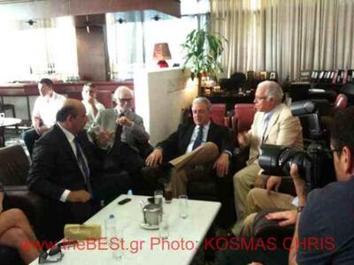 Πριν την ομιλία του ο κ. Αβραμόπουλος στο ισόγειο του ξενοδοχείου συναντήθηκε με υποψηφίους, πολιτευτές και στελέχη της Ν.Δ., όπου και ενημερώθηκε για το προεκλογικό κλίμα.