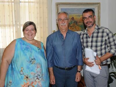 Συνάντηση γνωριμίας είχαν σήμερα Τετάρτη 11 Ιουλίου μετά τις 11 πρωί στο γραφείο του Δημάρχου Πατρέων, ο νέος καλλιτεχνικός διευθυντής του Δημοτικού Περιφερειακού θεάτρου της Πάτρας Θοδωρής Αμπαζής με τον Δήμαρχο Γιάννη Δημαρά, παρουσία και της δημοτικής συμβούλου και Προέδρου του ΔΣ του ΔΗΠΕΘΕ, κυρίας Νανάς Πατρώνη.