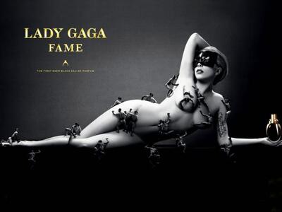 Η Lady Gaga τα έβγαλε όλα για τις ανάγκες προώθησης του νέου της αρώματος «Fame». Η φωτογράφηση έγινε από τον Στίβεν Κλάιν και δείχνει αρκετούς μικροσκοπικούς άνδρες να σκαρφαλώνουν το γυμνό κορμί της 26χρονης εκκεντρικής τραγουδίστριας.