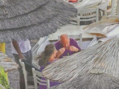 Με σπορ ντύσιμο και το σακίδιο του στην πλάτη, ο φωτογραφικός φακός της Real τον απαθανάτισε να κάνει τις βόλτες του στο νησί και να χαλαρώνει μαζί με την σύζυγό του. Σύμφωνα με το δημοσίευμα, μάλιστα, κατά τη διάρκεια των διακοπών του, έμεινε στο σπίτι του επιχειρηματία Τάκη Αθανασόπουλου, ενώ στο νησί βρέθηκε για λίγες μέρες και η κόρη του Μαργαρίτα.