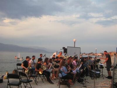 Την παράστασή τους «Κυμα…τογραφική βραδιά» έδωσαν αργότερα και μπροστά σε πολυπληθές κοινό που καθόταν ακόμα και στα γραφικά σκαλοπάτια πίσω από τον πλάτανο του Παυσανία ενώ ακολούθησε η Ορχήστρα Πνευστών Φιλαρμονικής Αιγίου με μαέστρο τον Λεωνίδα Χαραλαμπόπουλο (τραγούδι:Μ.Πεττεμερίδου, Α.Αντωνιάδη, Δ.Βλατάκη). Τη μουσική συνόδευε βιντεοπροβολή από κινηματογραφικές ταινίες με την επιμέλεια του Βασίλη Μανουηλίδη.