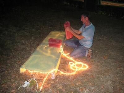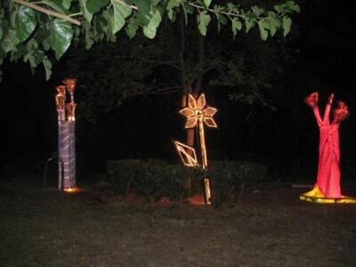 Μια πρωτότυπη υπαίθρια έκθεση φωτιστικών γλυπτών, όπως την ονομάζει ο ίδιος ο δημιουργός τους Γιάννης Κωσταράς, ανάβει τα λαμπιόνια της κάθε βράδυ στον δημοτικό κήπο Ζ.Πηγής & Μιχαλοπούλου και μαγνητίζει τα βλέμματα μικρών αλλά και μεγάλων με παιδική ψυχή και φαντασία.