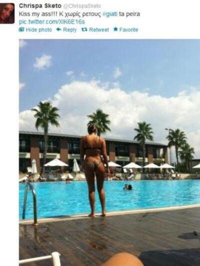 Γράφει δε «Kiss my ass και χωρίς ρετούς γιατί τα πήρα!».